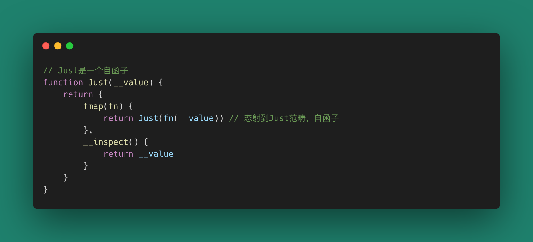 我们在Monad空间中消除了烦人的!== null判断,甚至消除了三元运算符。一切都只有函数。实际使用中一个Maybe要么是Just要么是Nothing。因此,这里用Maybe(..)构造可能让我们难以理解。