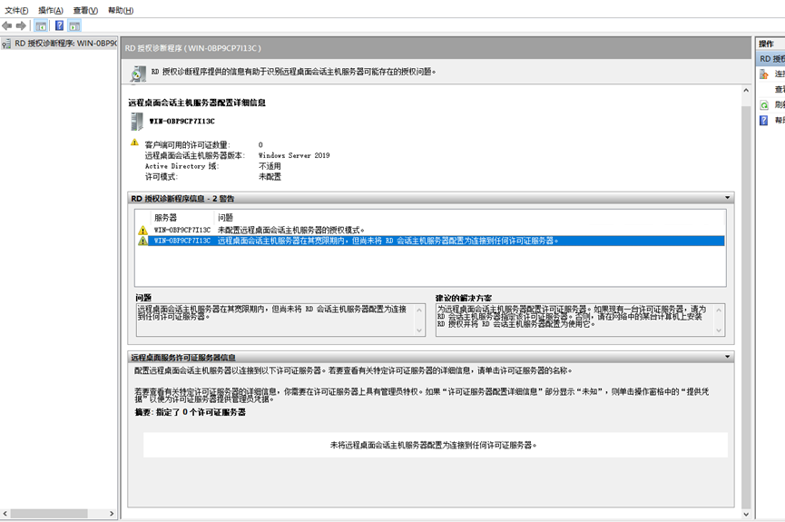 image.png打开“RD授权诊断程序”,可以看到没有警告信息了。显示了许可证数量,许可模式是按每用户分配,下面显示已经连接到一个许可证服务器了。