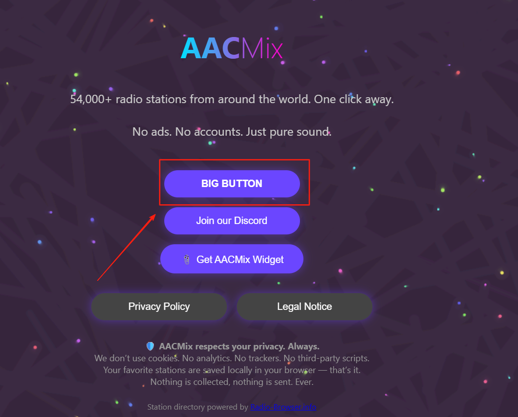 平台不使用cookies、分析工具或第三方脚本,所有收藏的电台信息均保存在本地浏览器中,彻底杜绝隐私泄露风险,使用更安心。 -