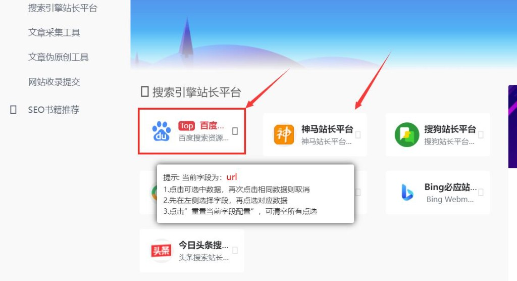 (2)复制列表页链接https://tool.seoshipin.cn/sites/sousuo/