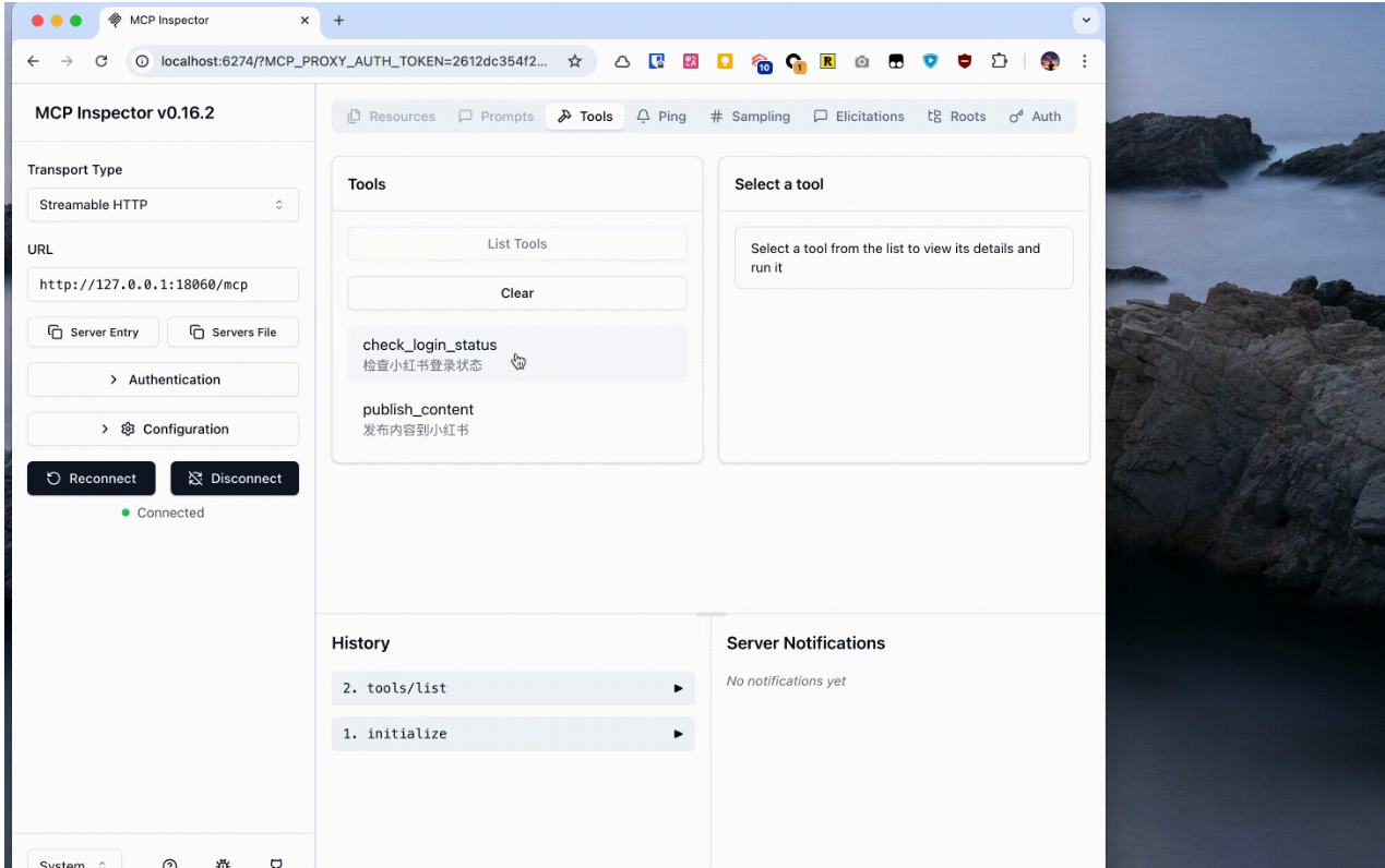2、随后运行登录工具完成小红书账号的首次扫码登录;最后启动MCP服务并配置到支持的AI客户端,即可通过对话或指令使用各项功能。
