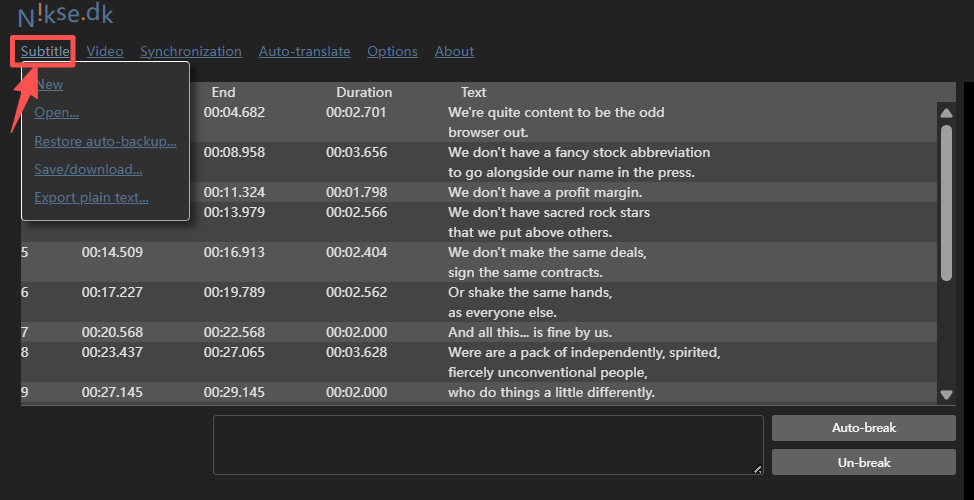 Nikse.dk SubtitleEdit Online|一款优秀的免费在线字幕编辑工具,支持多格式字幕实时预览